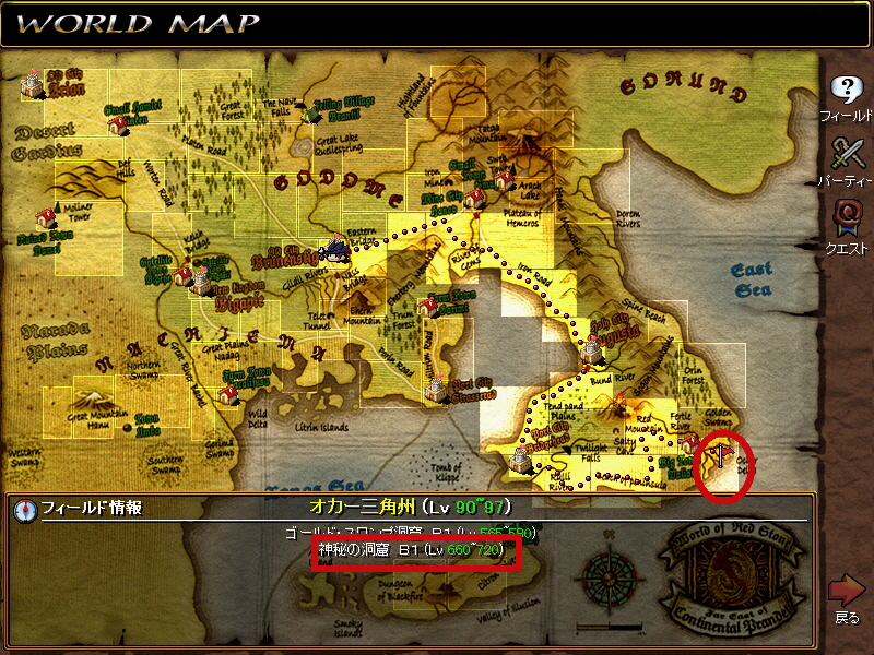 神秘の洞窟はオカー三角州のちょうど真ん中くらいの位置にあります。SS参照